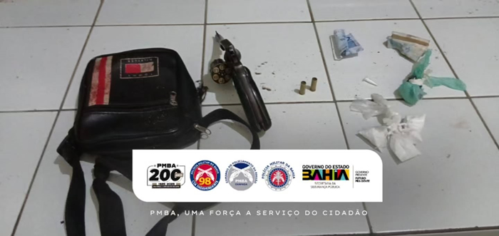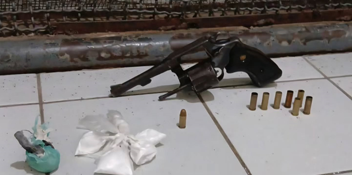 na apreensão de uma arma de fogo e entorpecentes.